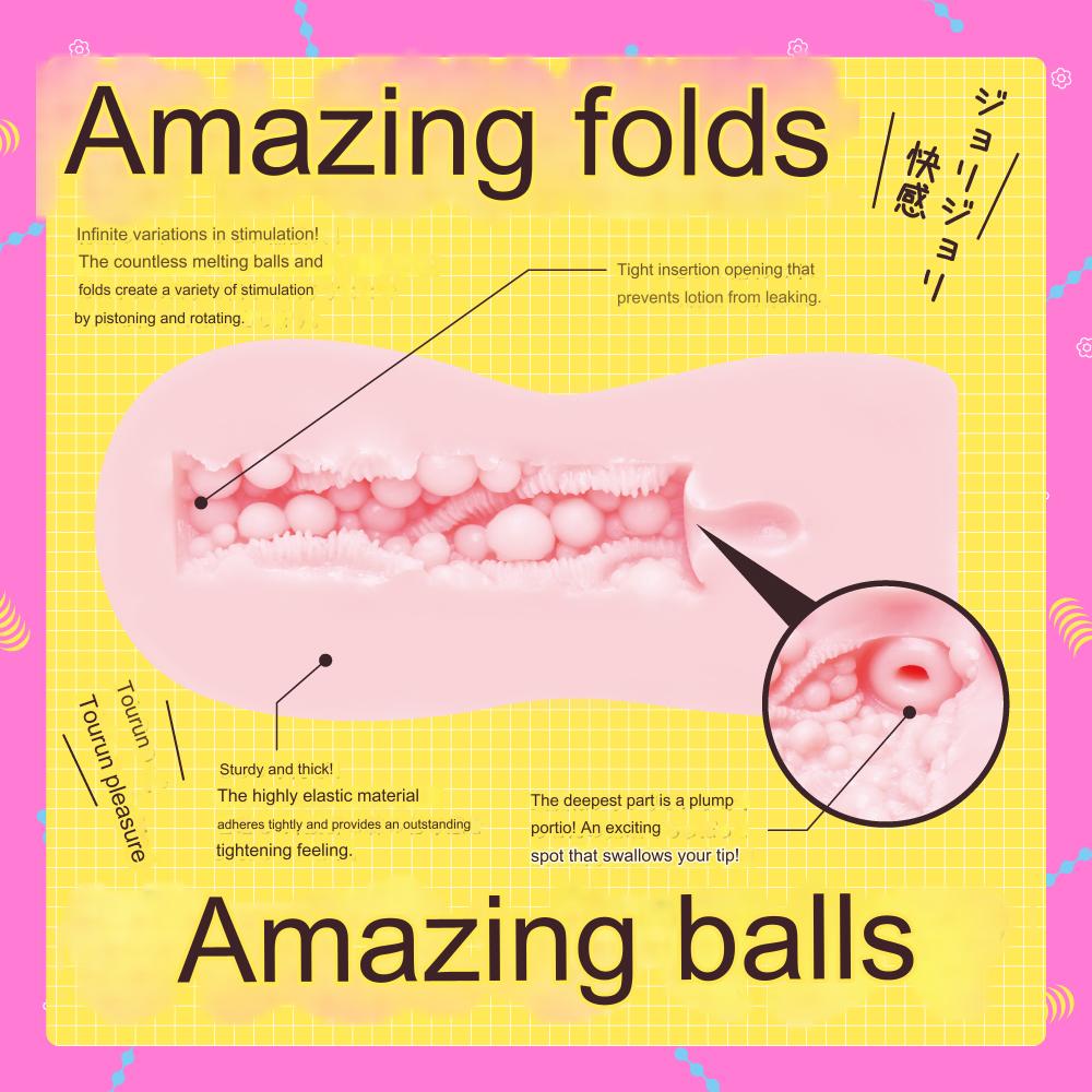 The amazing balls for tingling sensation! Miraculous collaboration of two opposite stimulations! Extra-thick meaty folds undulate and run in all directions through the smooth and dense zone with zero friction! The absolute pleasure of being stimulated while melting and jiggling! Piston and rotate for endless variations of stimulation!