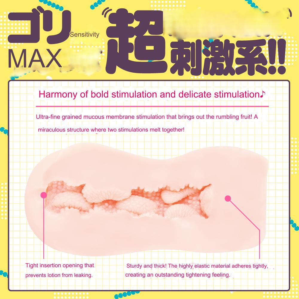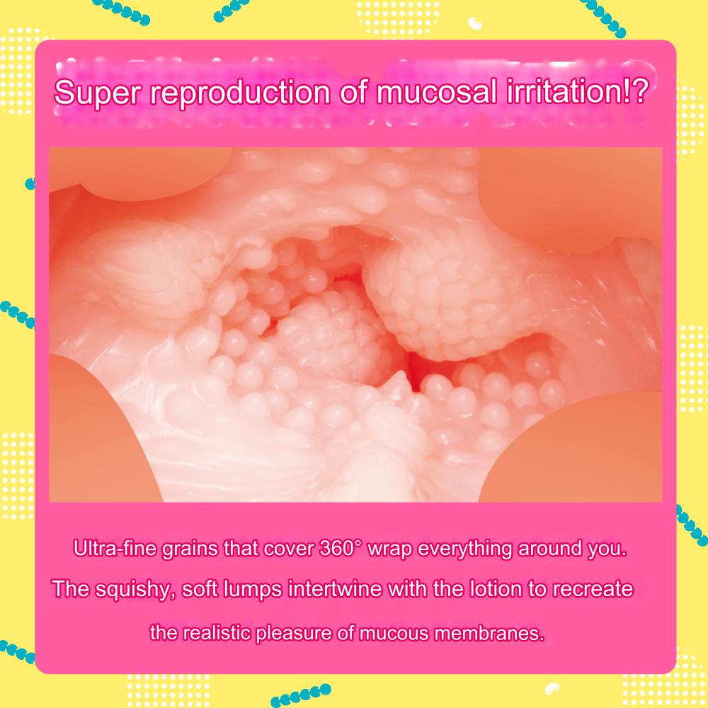 Soooo bumpy! Super grippy! Super-reproduction of mucous membrane stimulation! The 360° fine particles will wrap around your entire body. The soft and fluffy bumps are intertwined with the lotion to reproduce realistic sensations like those of mucous membranes. The bumps are super stimulating with maximum sensitivity! Harmony of bold and delicate stimulation! Miraculous structure of two stimuli melting together! The real insertion sensation of squeezing and tightening is a melting pleasure of the rumbling stimulation! Piston and rotate it for endless variations of stimulation!