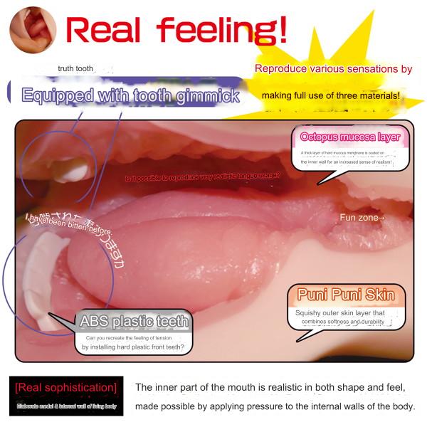 The typical girlfriend blowjob. You can tell she's not a professional because her teeth glide gently over your penis. But unlike your ex-girlfriends, she can take your rod all the way into her mouth. That feels incredibly good. You can cum deep down her throat without gagging!